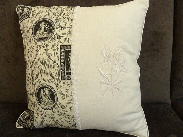 broderie blanche coussin panier floral